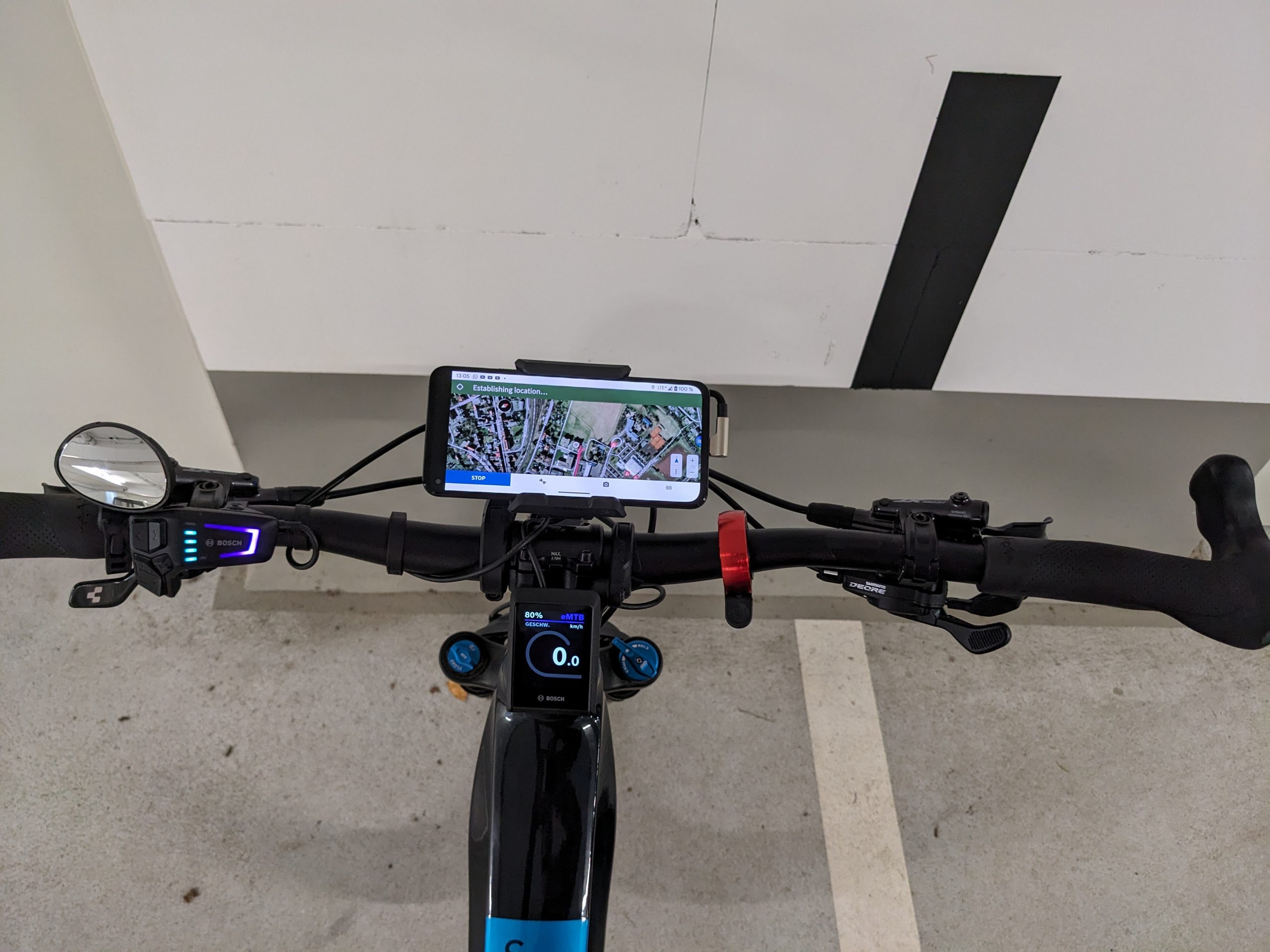 Messen lassen sich Neigungen gut mit der Bubble Level App. - Remote-Hebel für Dropperpost nach aussen versetzt, damit sich der Moduswahlschalter der Bosch LED Remote besser (senkrecht) positionieren lässt.